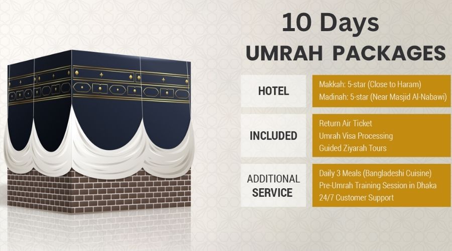 10 Days Premium Umrah Package from Bangladesh by Jetway Hajj Group offers a luxury and hassle-free pilgrimage with 4–5 star hotels near Haram, VIP transport,...