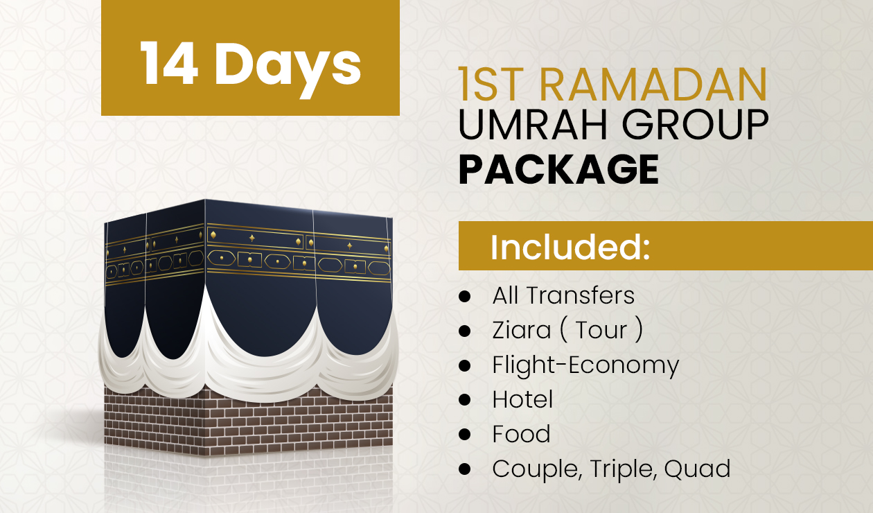 Perform your Umrah with ease, comfort, and dignity — without breaking the bank. Our Mid Ramadan Umrah Package offers a perfect balance of affordability and...