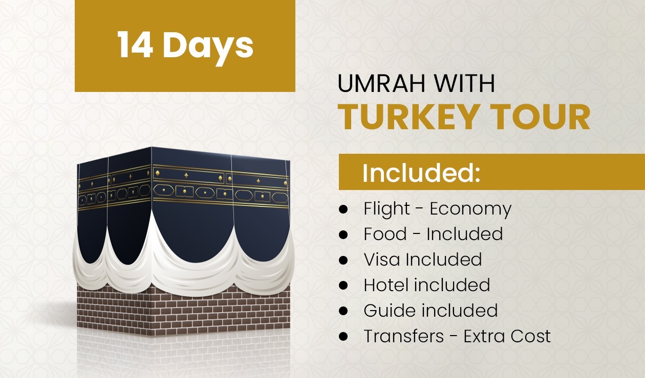 Perform your Umrah with ease, comfort, and dignity — without breaking the bank. Our Umrah With Turkey Tour Package offers a perfect balance of affordability...