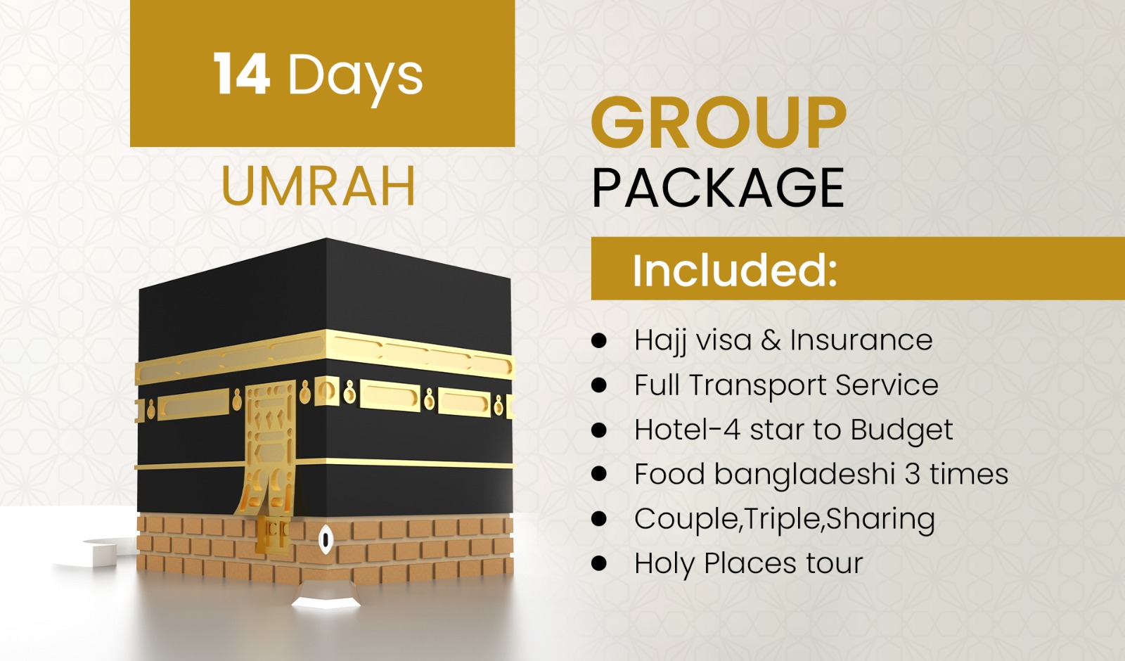 14 Days Budget-Friendly Umrah Package with Guided Group from Bangladesh by Jetway Hajj Group offers an affordable yet well-organized pilgrimage experience with group guidance, comfortable standard accommodation, and reliable transport—perfect for budget-conscious pilgrims seeking spiritual support and ease throughout the journey. Trusted agency with International Air Transport Association accreditation, HAAB membership, and Ministry licensed assurance for safe, reliable, and professional Umrah service.