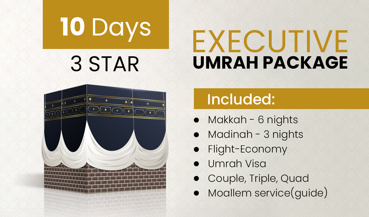 10 Days 3 Star Executive Umrah Package 2026